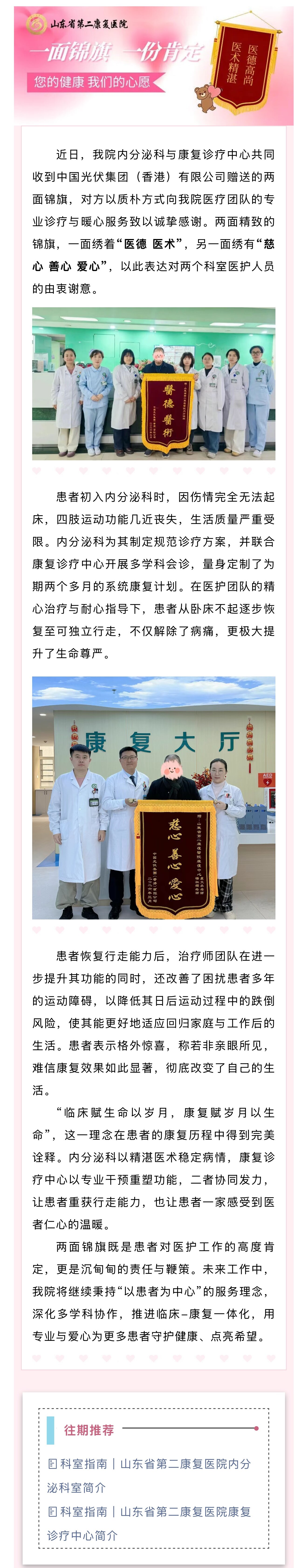 慈心善心爱无疆 医精德诚护安康——我院内分泌科与康复诊疗中心联合救治获患者锦旗致谢