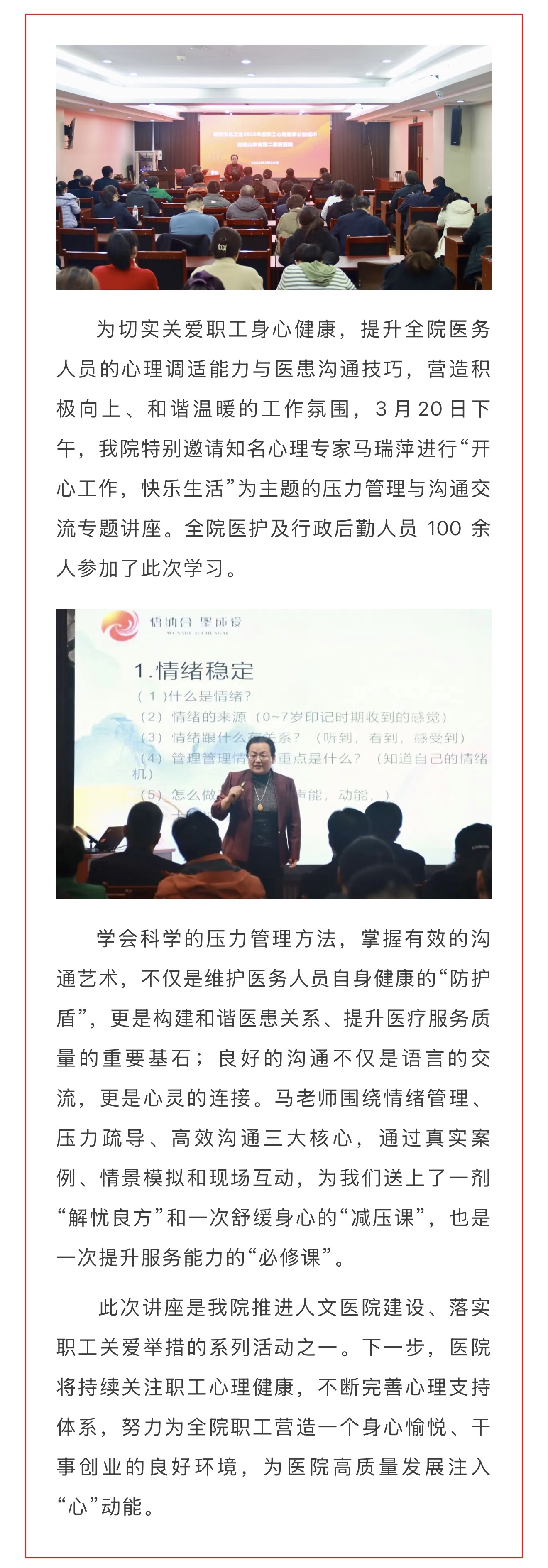 关爱职工心理健康,提升优质服务内涵——我院举办压力管理与沟通交流专题讲座