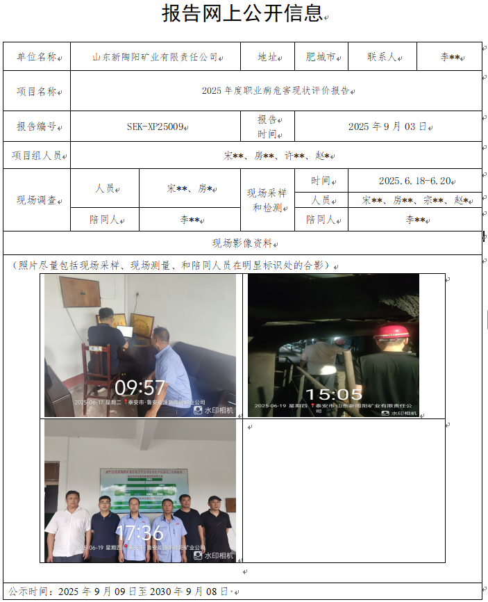 山东新陶阳矿业有限责任公司职业病危害现状评价信息公开