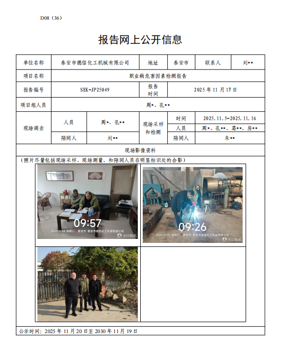 泰安市德信化工机械有限公司职业病危害因素检测报告网上公开信息