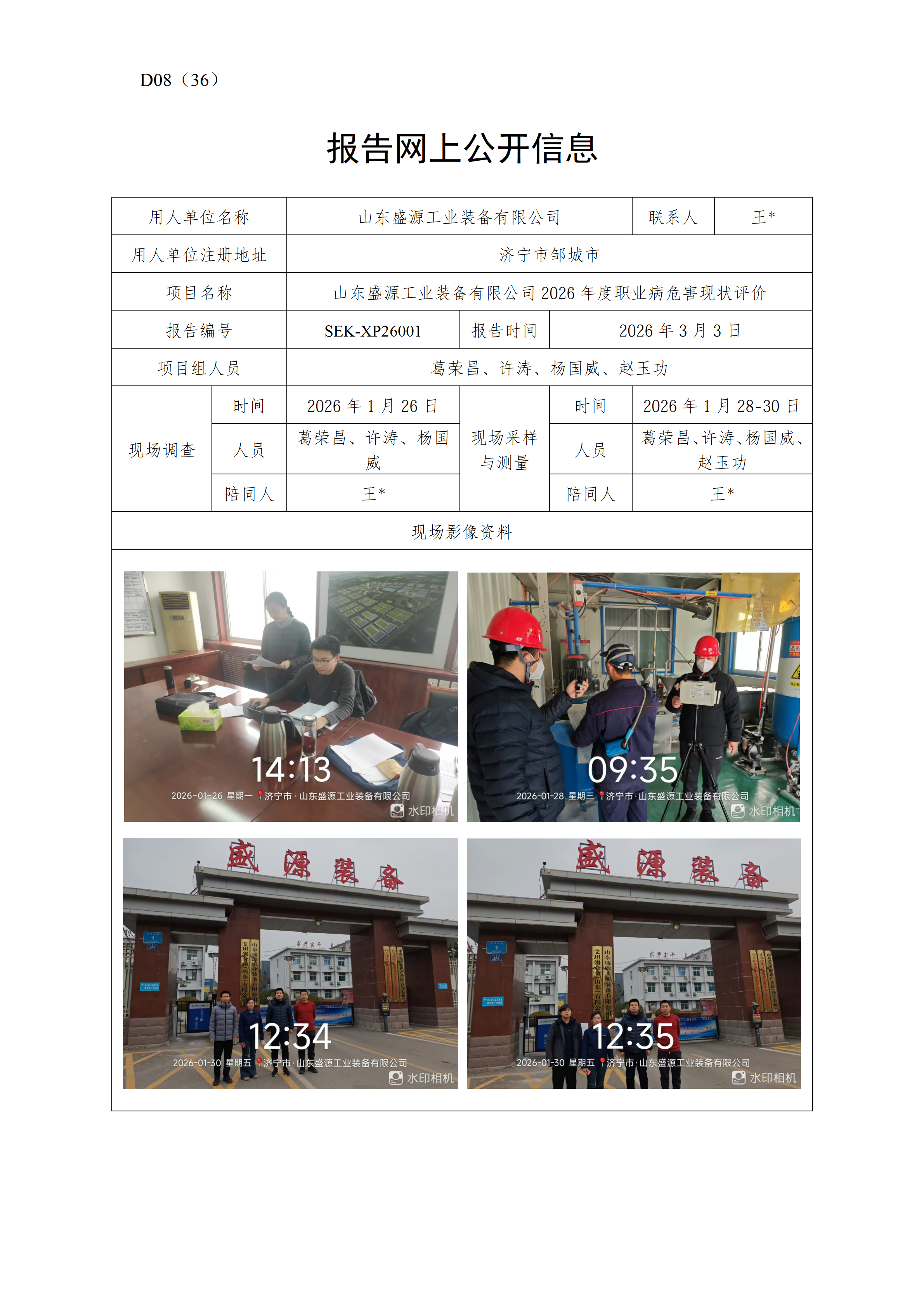 山东盛源工业装备有限公司2026年度职业病危害现状评价报告网上公开信息