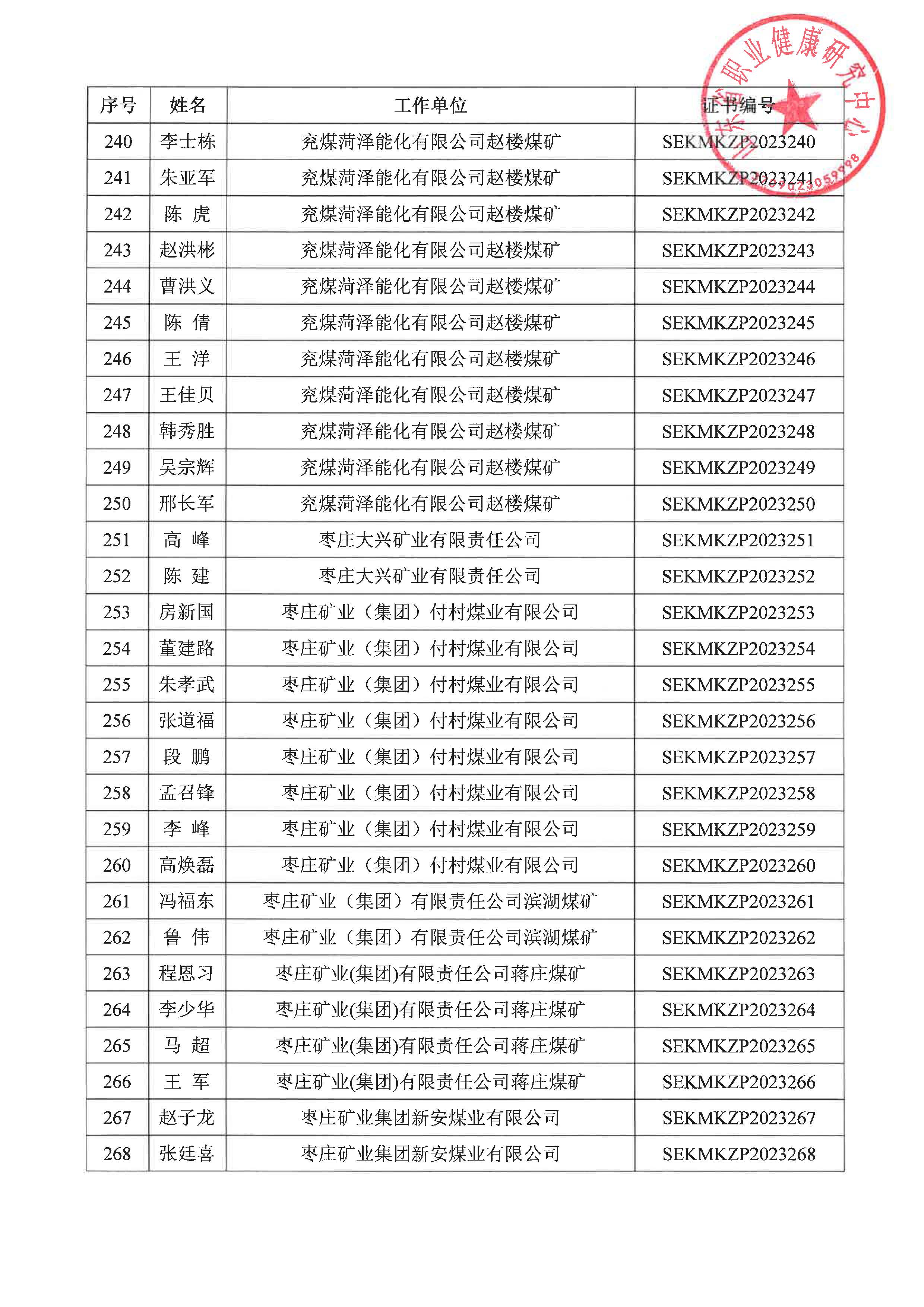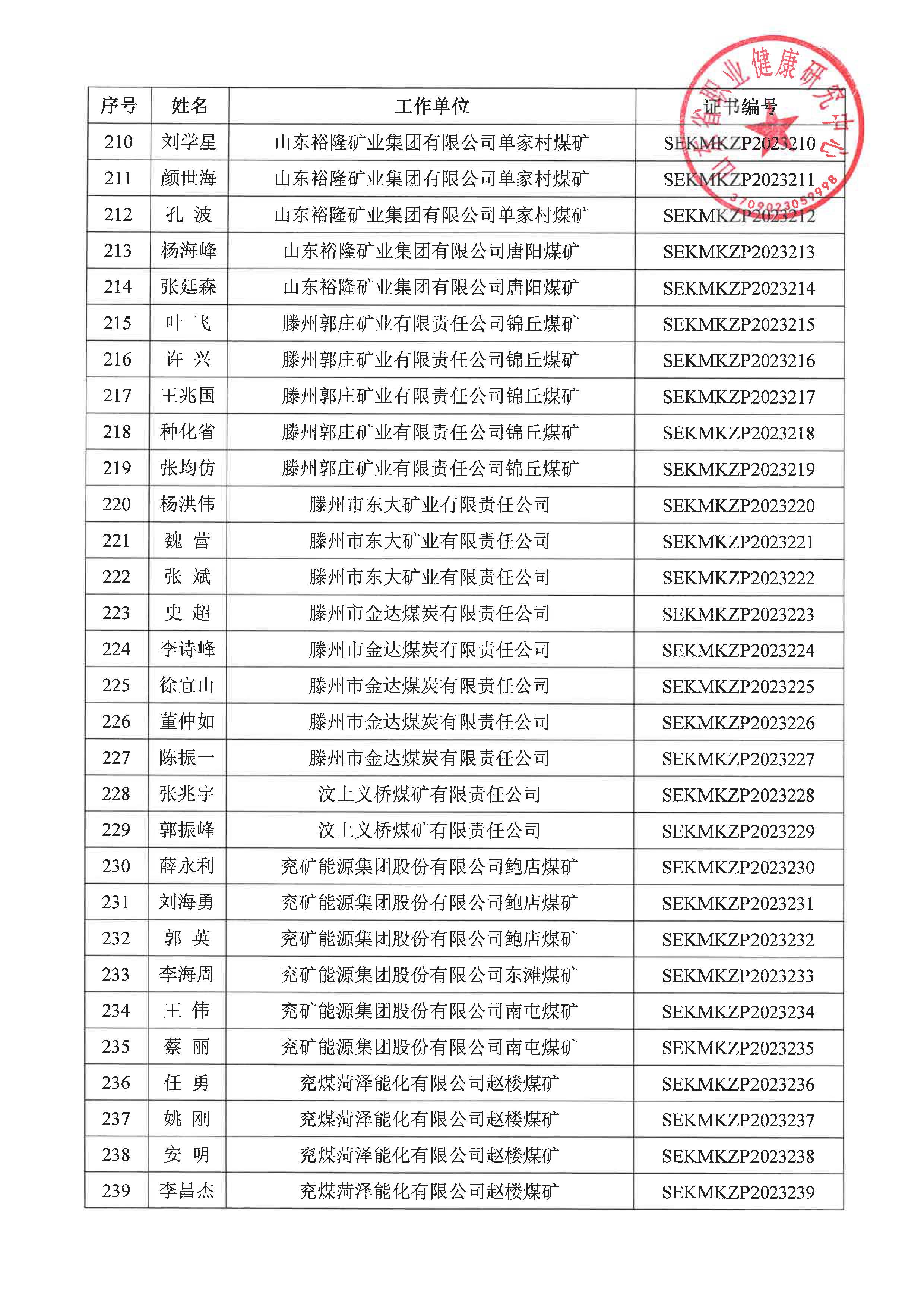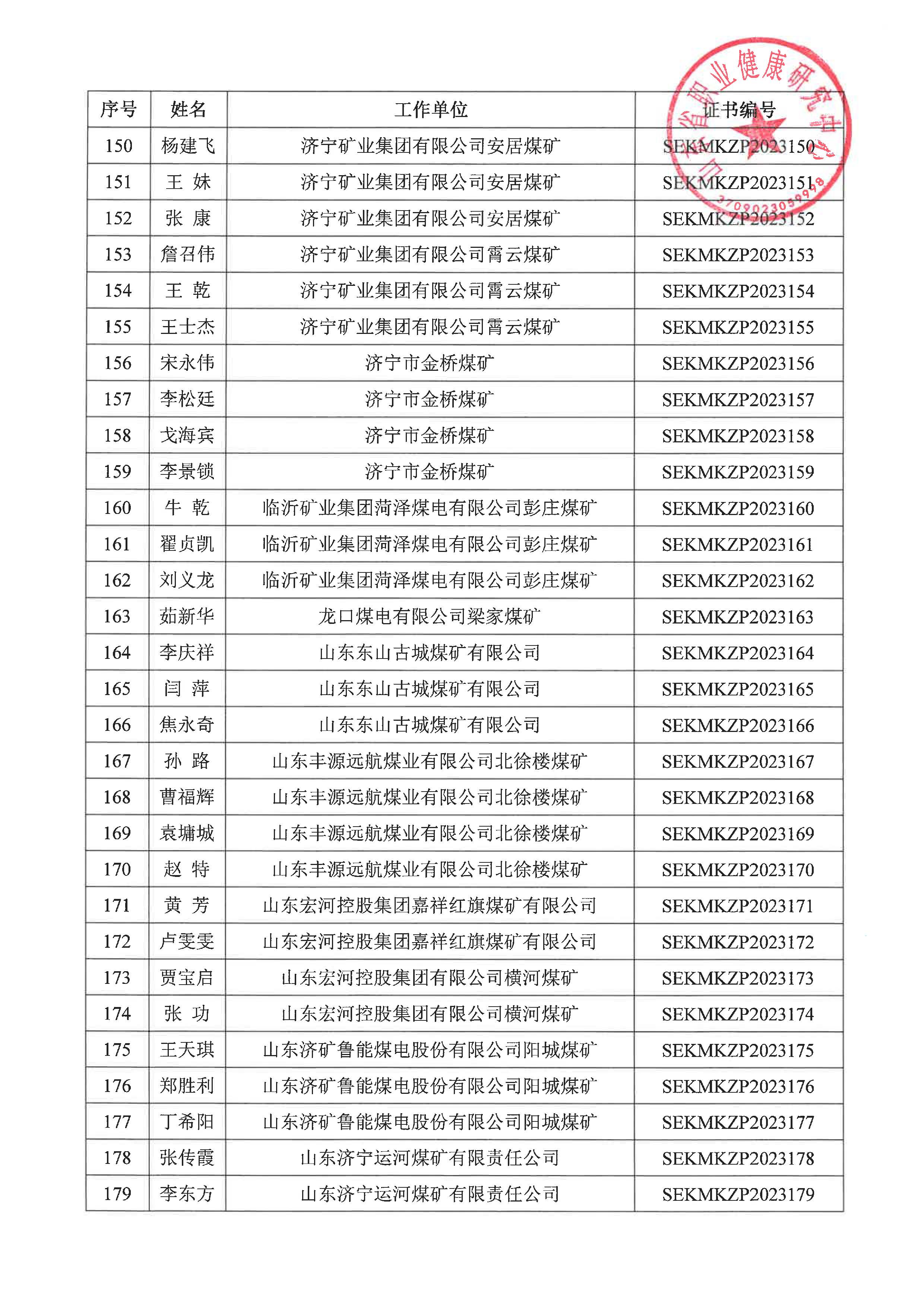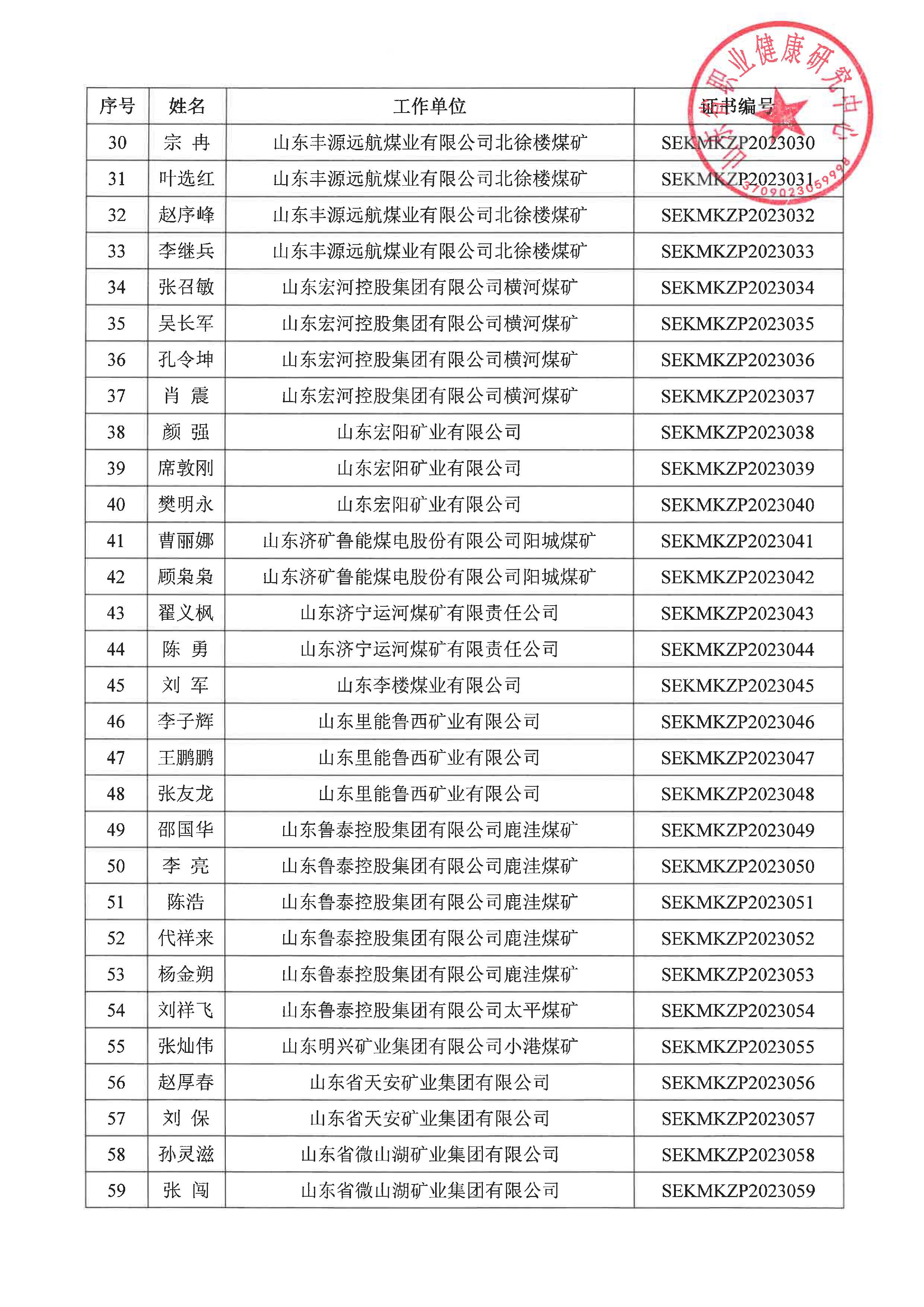 山东省职业健康研究中心于2023年5月举办了两期全省煤矿企业职业健康培训班。(第一期时间为5月8日至5月12日,第二期时间为5月15日至5月19 日),并在培训结束后开展了考核,现将考核合格人员名单予以公示。