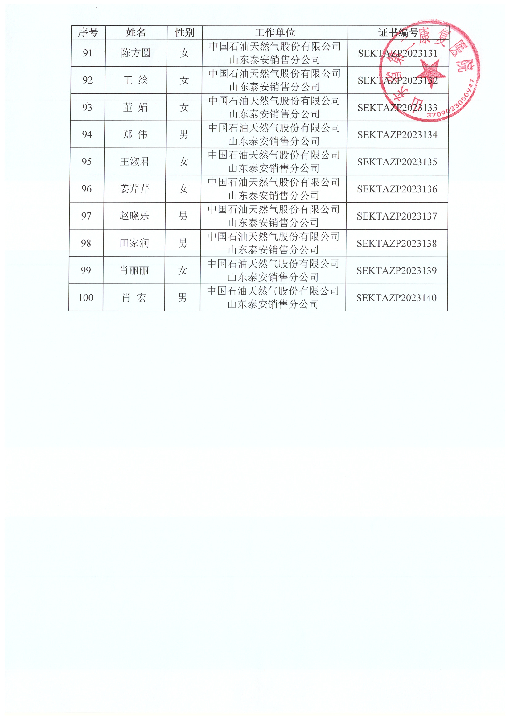 2023 年中国石油天然气股份有限公司山东泰安销售分公司职业健康培训合格名单公示