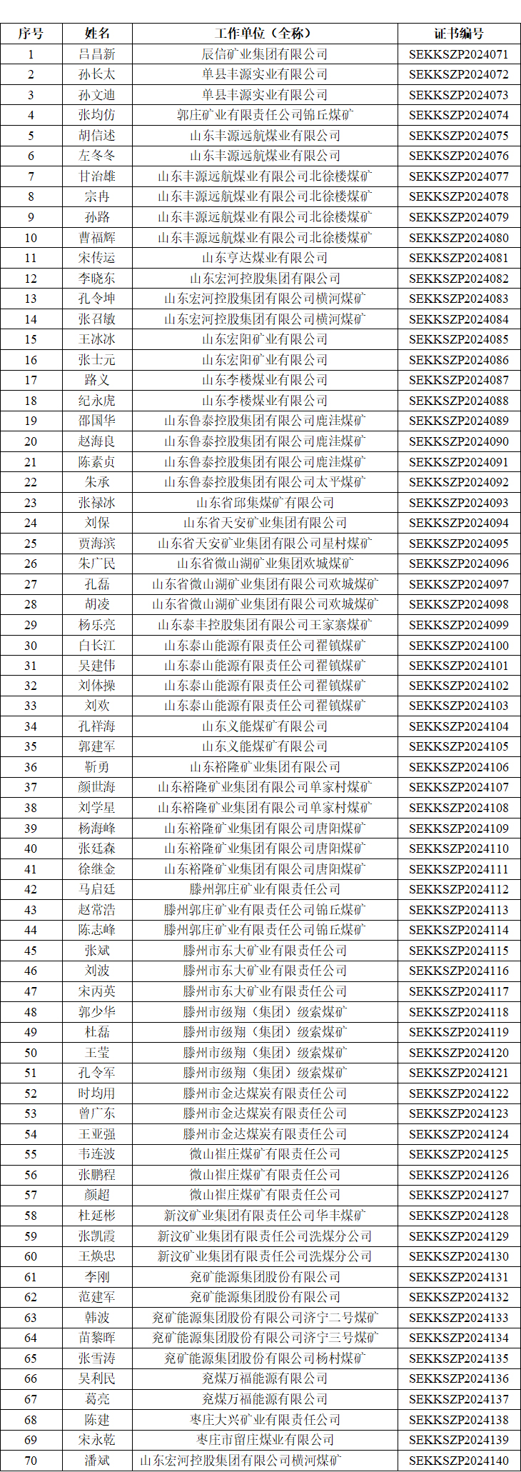 山东省职业健康研究中心于2024年7月29日至8月2日举办了全省矿山企业职业健康培训班(第二期)。并在培训结束后开展了考核,现将考核合格人员名单予以公示。