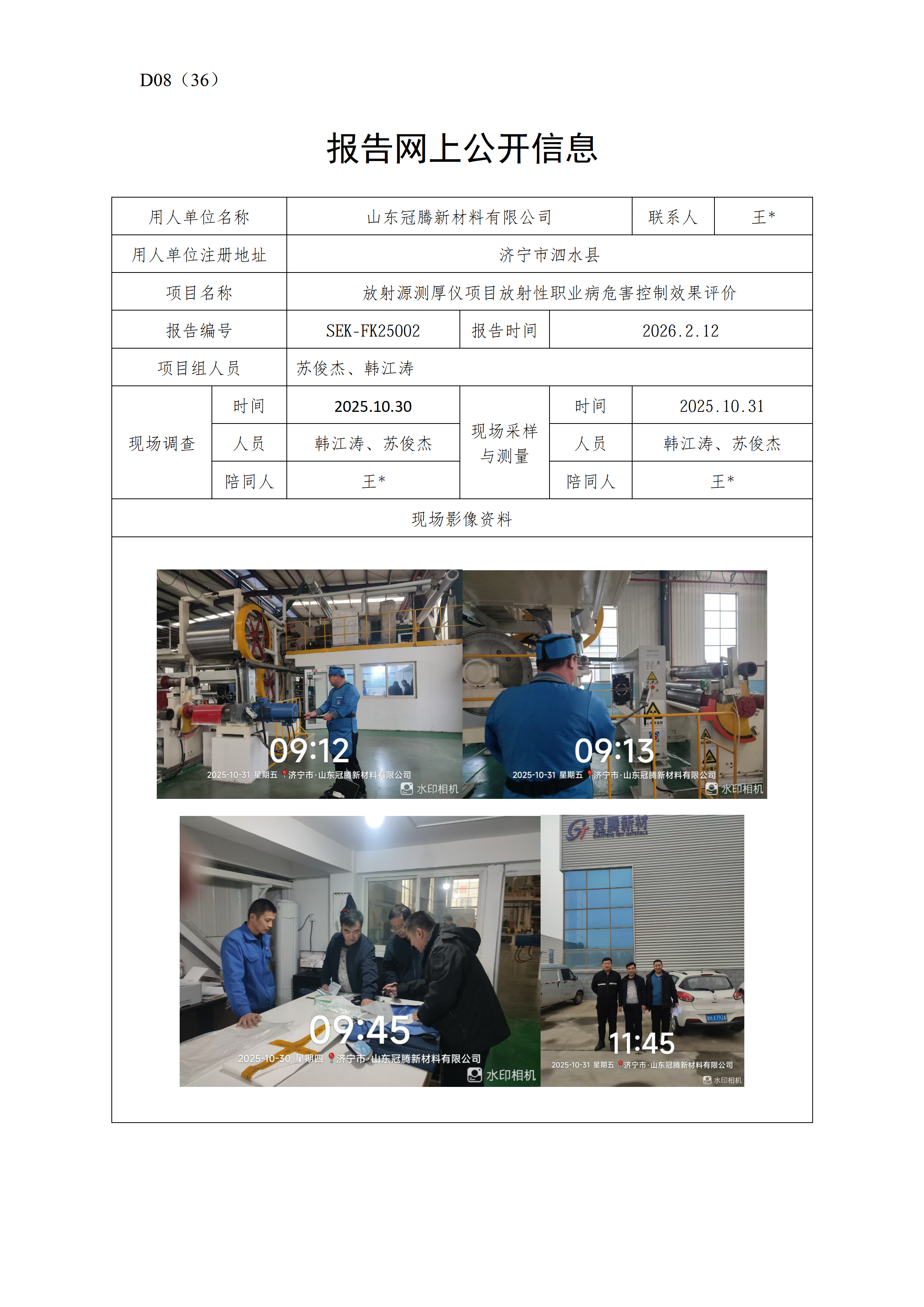 放射源测厚仪项目放射性职业病危害控制效果评价报告网上公开信息